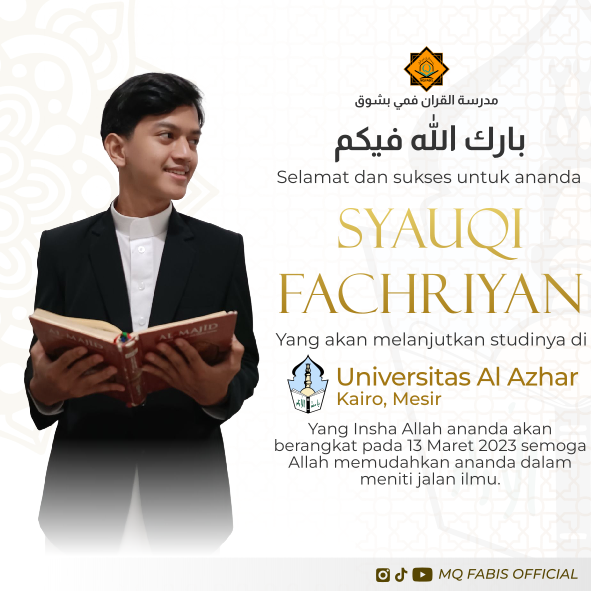 Pada hari Sabtu dan ahad pada tanggal 13 Maret 2023 asatidz sekaligus santri kami di pondok pesantren Madrasatul Qur'an Fami Bi Syauqin, bernama Syauqi Fachriyan telah diterima dan melanjutkan studinya di universitas Al-Azhar Kairo,Mesir