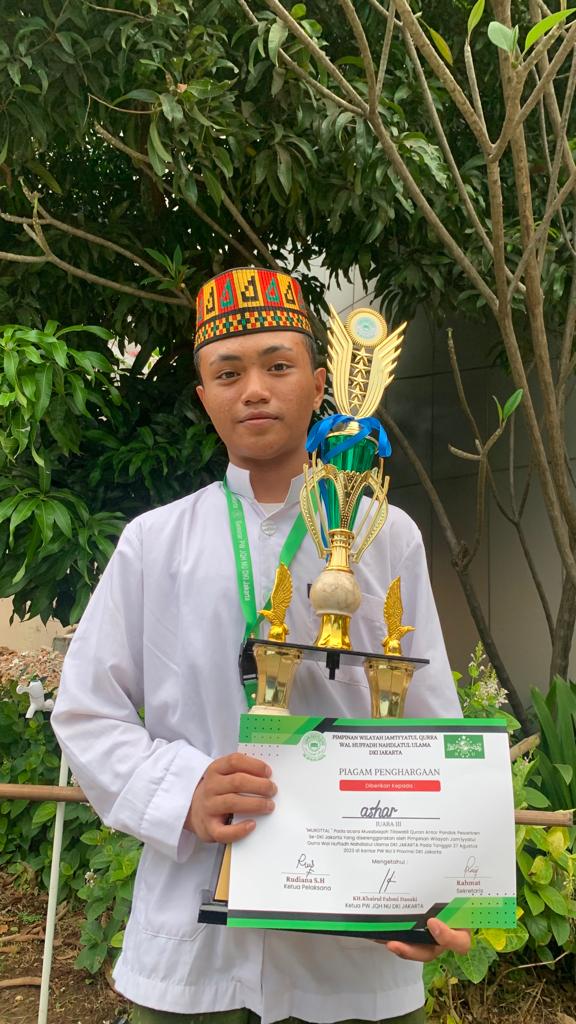 Alhamdulillah pada 27 Agustus 2023 salah satu santri kami mendapatkan juara 3 dalam Musabaqoh Tilawatil Quran cabang Murottal untuk tingkat remaja, yang digelar oleh Pimpinan Wilayah Jam'iyyatul Qurra Wal Huffadh Nahdlatul Ulama DKI Jakarta. Sekaligus merupakan juara perdana dari awal berdirinya pesantren kami, semoga para santri yang lain dapat mengikuti jejak ananda Ashar dan membuat harum nama MQ FABIS di rancah Nasional maupun Internasional.