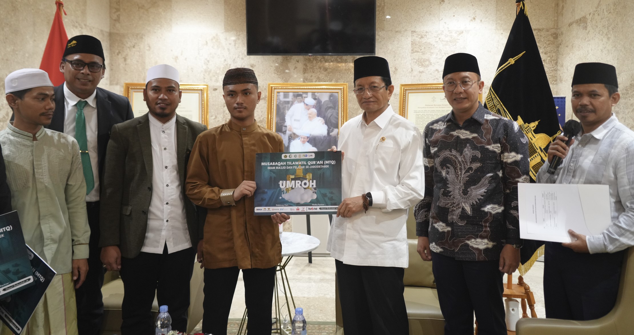 Dokumentasi pemberian hadiah Umroh untuk Ananda Ashar oleh Menteri Agama Prof. Dr. KH. Nasaruddin Umar, di ruang VVIP Masjid Istiqlal pada 6 Januari 2025.